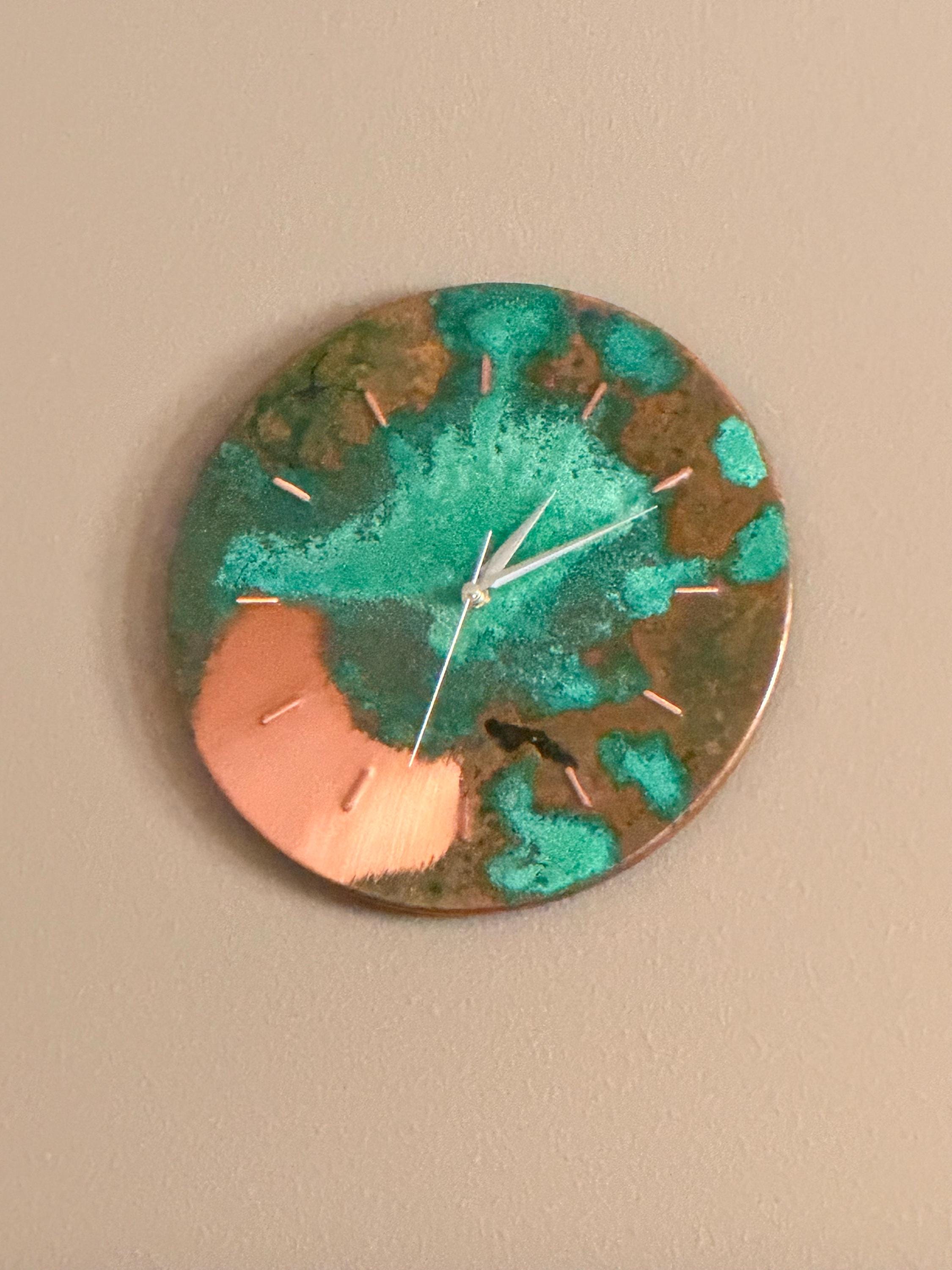 DIMENSIONS of Turquoise Green Aged Patina Copper Unique Wall Clock
