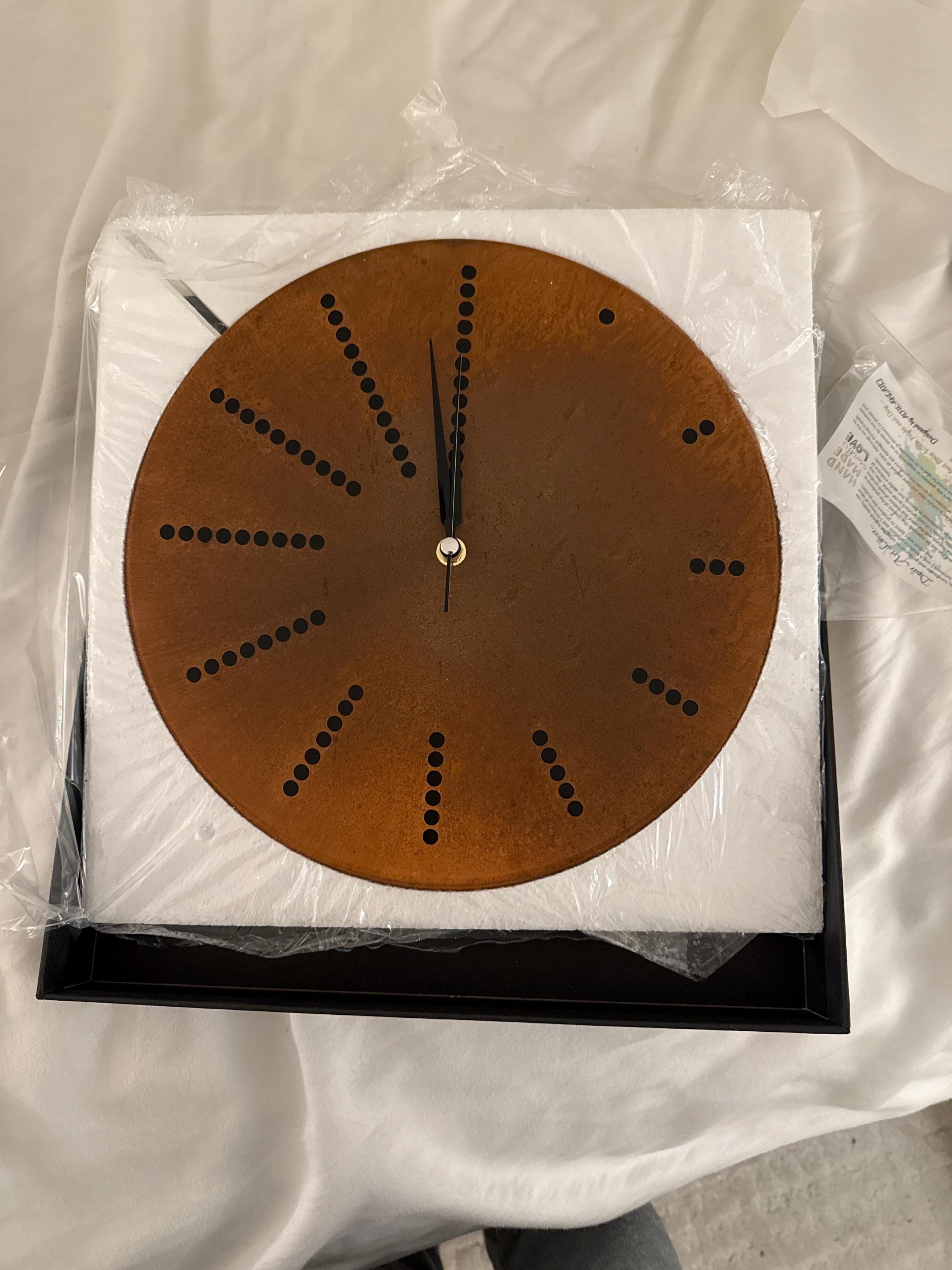 Seller’s communication by seller is top level. Warm and friendly but informative. Packaged securely. Worked great right out of the box but I appreciated the consideration and instructions in case it didn’t. Very cool, one of a kind clock. Perfect!